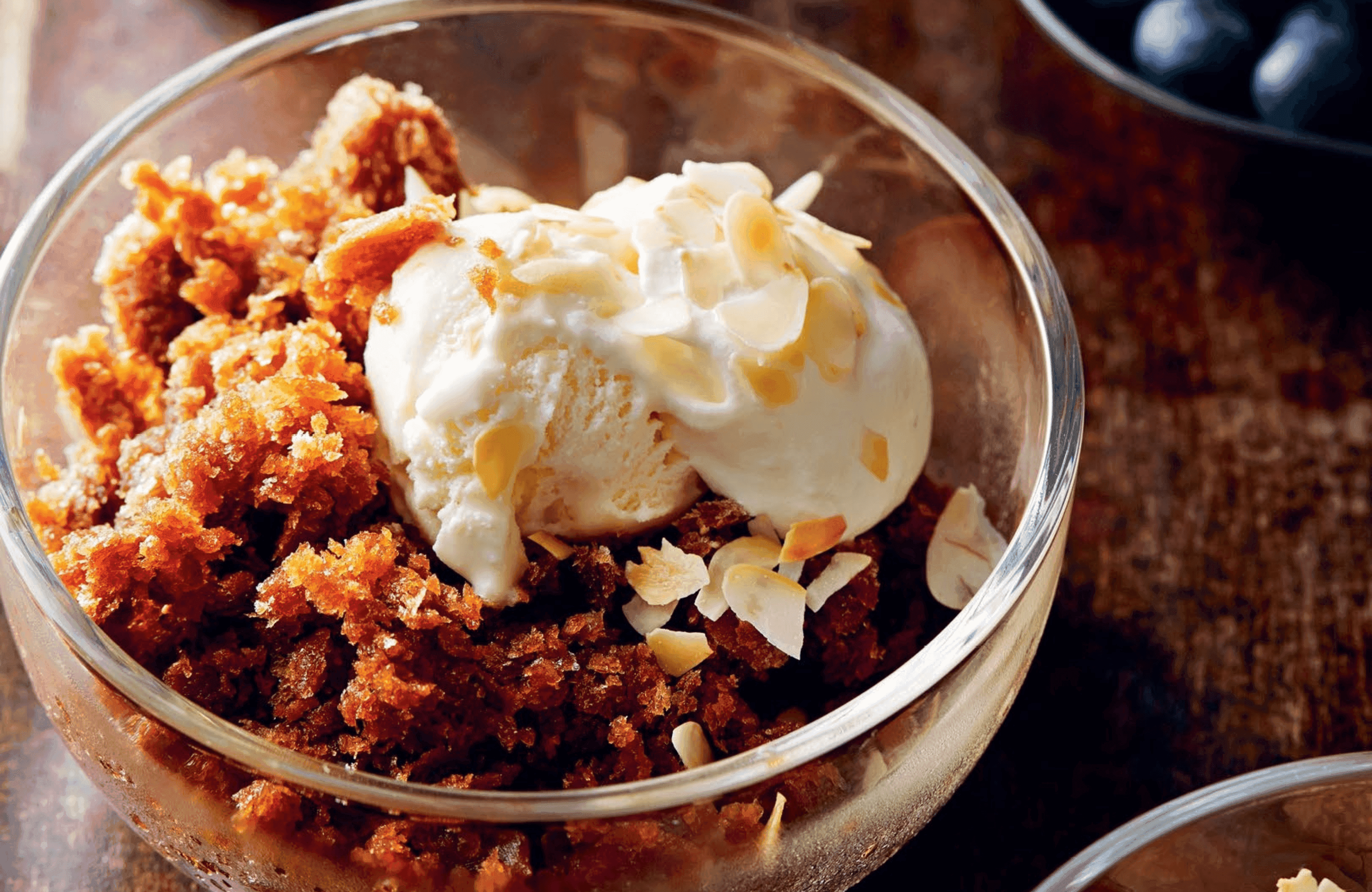 Kaffegranita med mandler og solbær