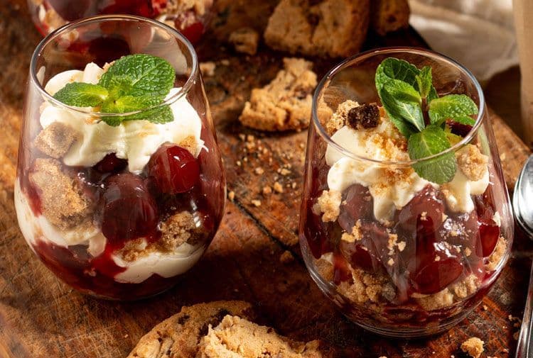 Trifle mit Cookies und Kirschen
