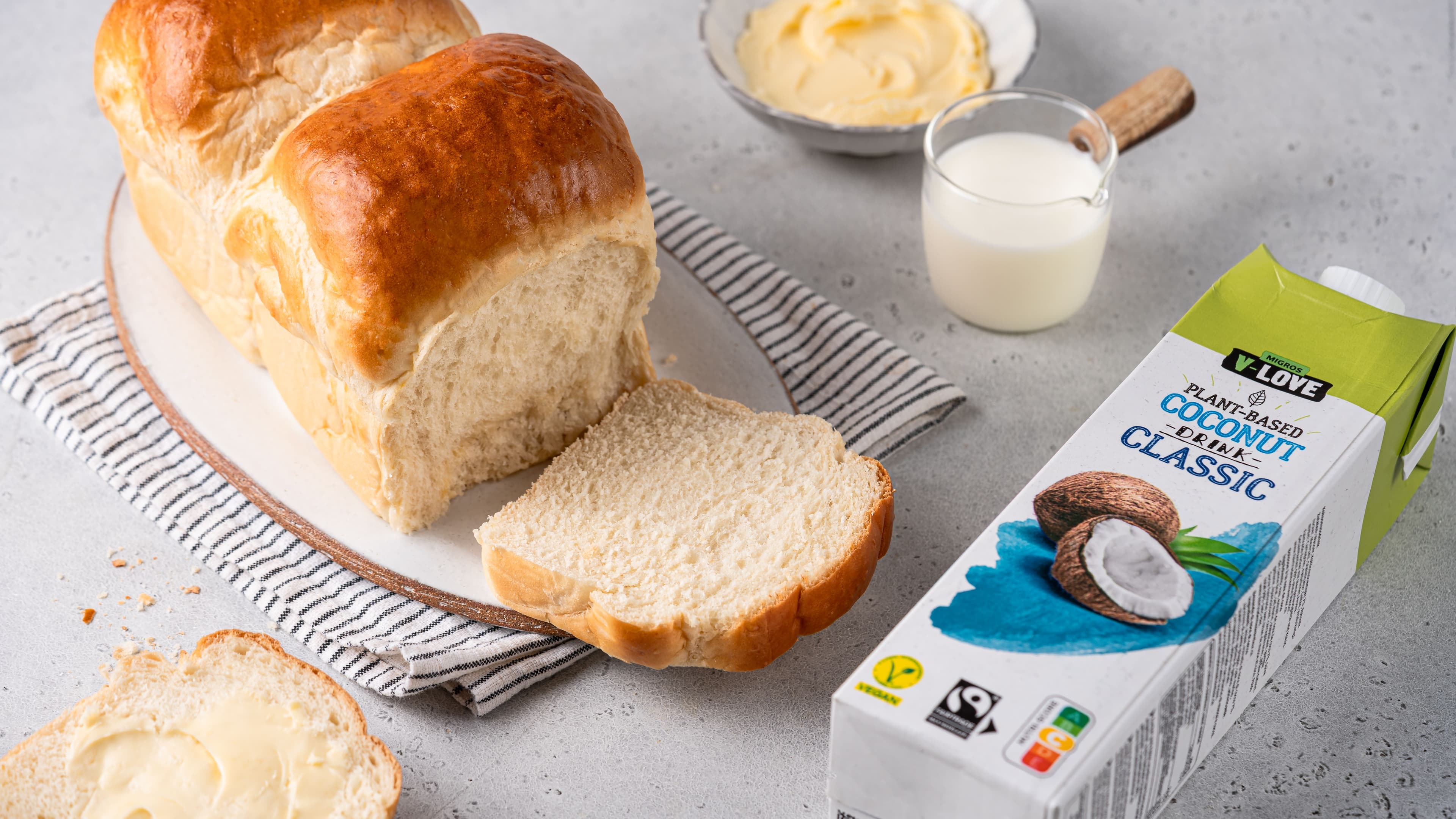 Fluffiges, weiches Kokosmilch-Brot mit Tangzhong-Starter für extra Leichtigkeit und zarte Krume – perfekt zum Zvieri oder zu Tee.